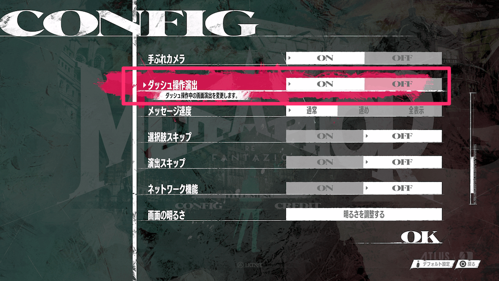 | ダッシュ中の演出(モーションブラー)の設定が可能 |