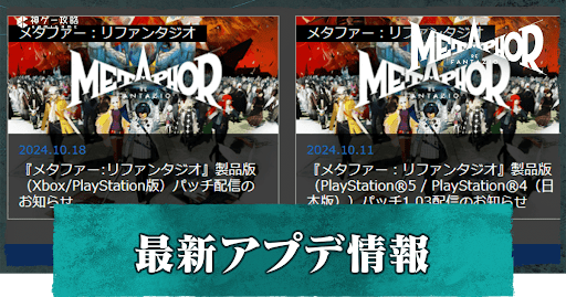 メタファーリファンタジオのアップデート情報について解説。メタファーの最新アプデ情報や次回のアプデ情報、過去のアップデート内容についても掲載しているため、メタファー(アトラス)をプレイする際の参考にどうぞ。