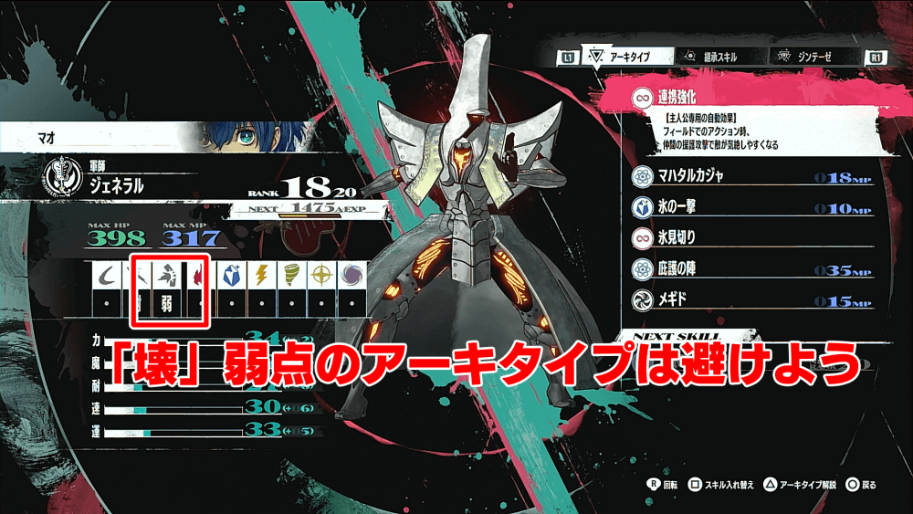 ホモ・ブテラは壊属性の攻撃を中心に攻めてくるため、壊弱点のアーキタイプは編成しないようにしよう。ただし壊弱点の「軍師」の強力なバフは採用したいため、技継承を利用して「庇護の陣」を継承しておくと良い。
