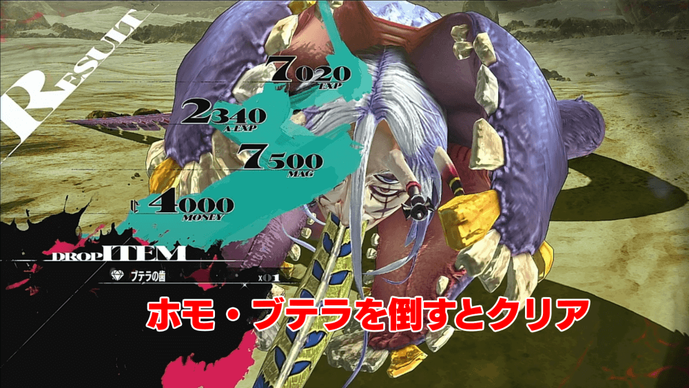 2大砂蟲ホモ・ブテラを撃破するとクリア