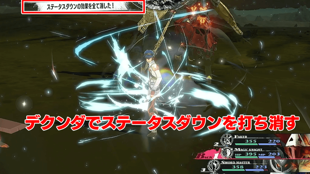味方全体の防御を2段階上げる「庇護の陣」と、味方の弱体効果を打ち消す「デクンダ」を技継承しておこう。また、それぞれの技は別々のキャラに継承し、1ターンで両方使用できるようにしておくと戦いやすい。