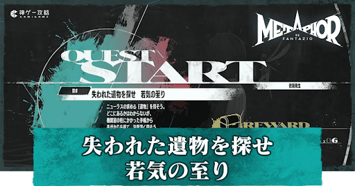 【メタファー】失われた遺物を探せ若気の至りの受注場所と攻略チャート