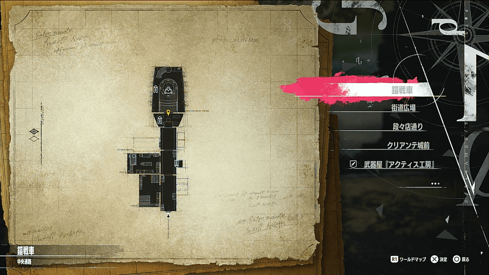 遺物がある場所の情報は鎧戦車で確認可能