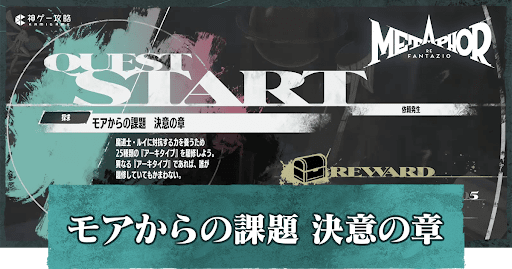 メタファーリファンタジオの依頼「モアからの課題 決意の章」の攻略情報を掲載。受注場所や発生タイミング、報酬などについて掲載しているので、メタファーをプレイする際の参考にどうぞ。