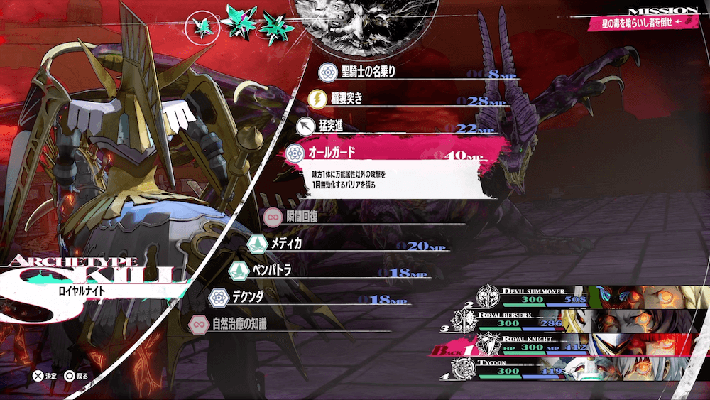 星の毒を喰らいし者は全属性を反射してしまうため、耐性に影響を受けない万能属性を中心とした攻撃を用意しよう。プリンスやタイクーンなら単体への強力な万能属性を持つほか、ロイヤルベルセルクならジンテーゼで強力な万能攻撃が可能だ。