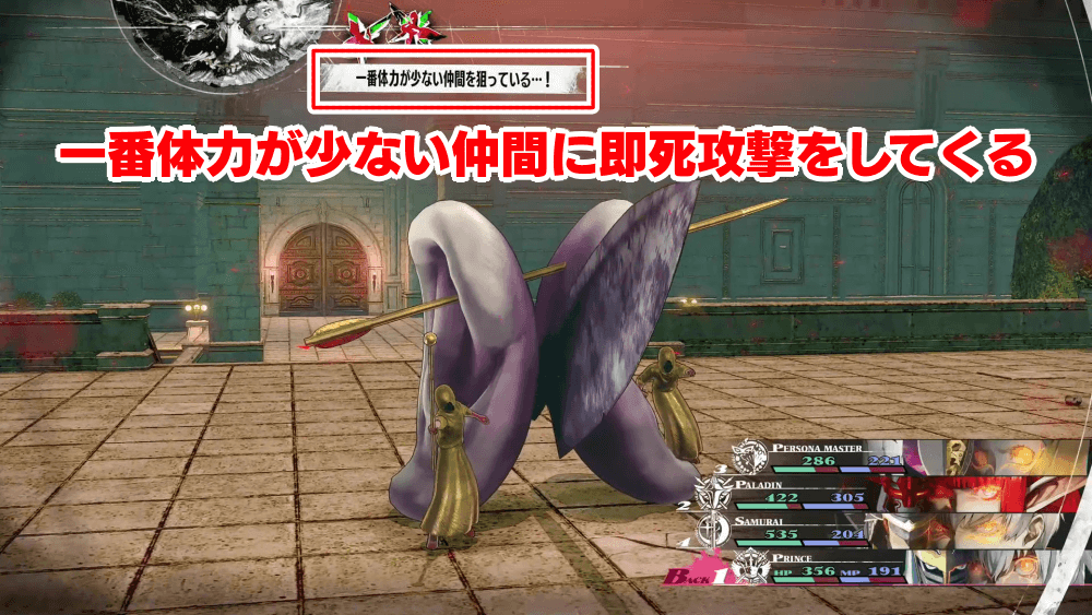 仲間のHPが減ると即死攻撃を狙ってくる