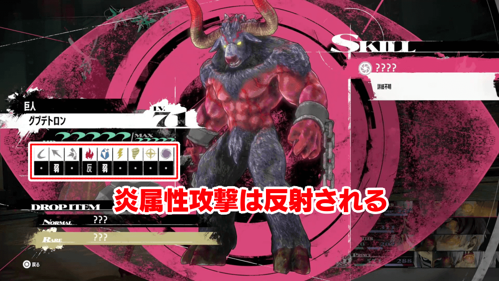 グプデトロンは炎属性攻撃を反射する耐性を持っているため、炎属性の攻撃だけは使用を控えよう。他の属性には耐性が無いので、炎属性だけに気をつければ問題ない。