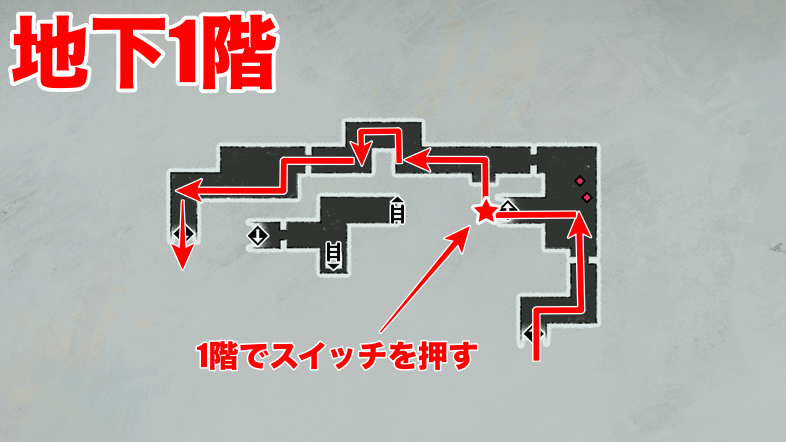 | 2 | 1階でスイッチを押してから地下2階へ向かう |