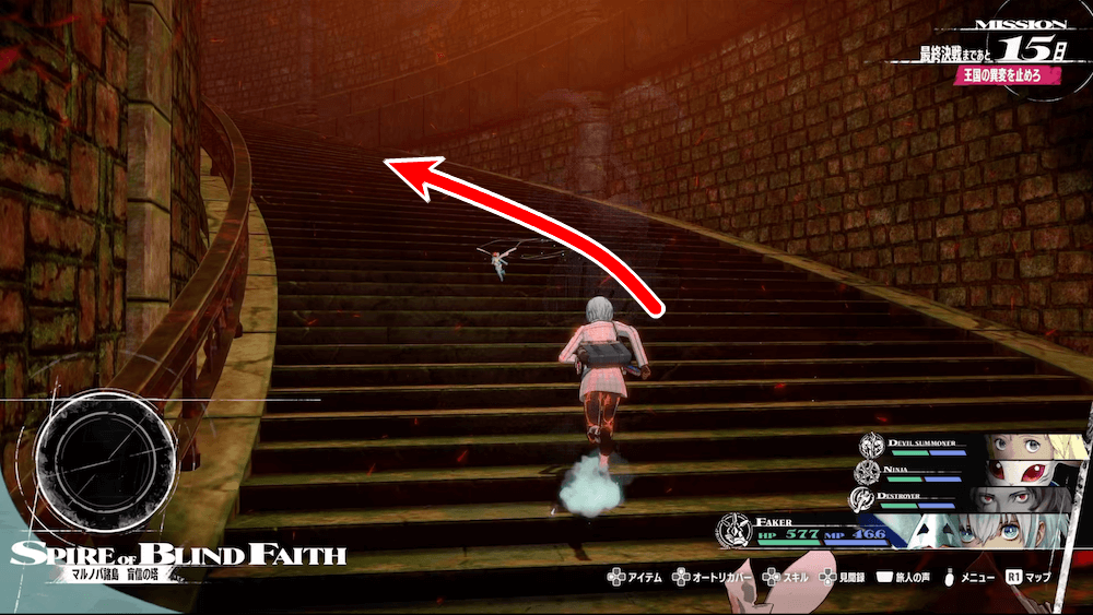 盲信の塔の到着後は、ボスのいる屋上を目指して登っていこう。既に一度訪れている場合は、道中の敵は無視して駆け上がるだけで問題ない。
