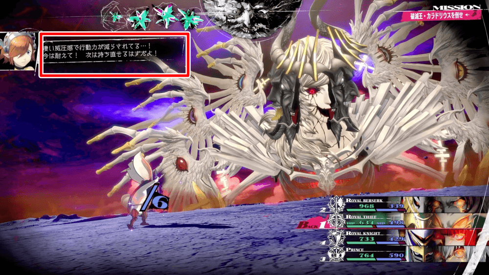 ラスボスがハイプレッシャーを使用した後は味方のプレスが1つ減るため、体勢を立て直すターンにしよう。HPや状態異常の回復、ステータスダウンの解除などを行い仕切り直すと良い。