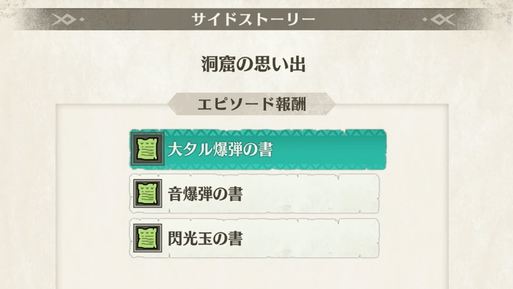 | 報酬 | ・大タル爆弾の書 ・音爆弾の書 ・閃光玉のレシピ |