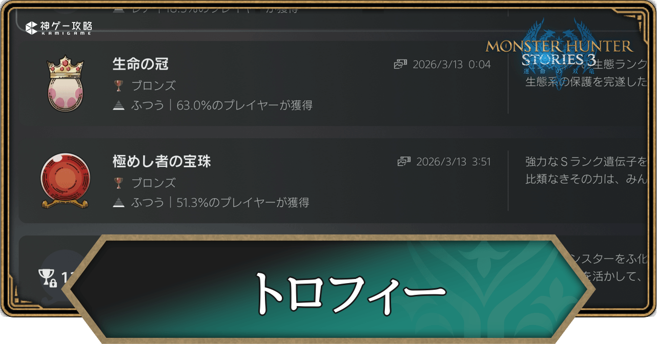 生命の冠モンスターの生態ランクをSにした証。生態系の保護を完遂した者に授けられる冠 |
