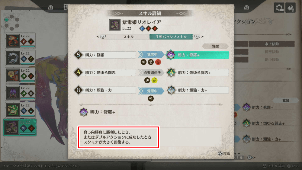 | 特定のスキルの発動条件になっている |
