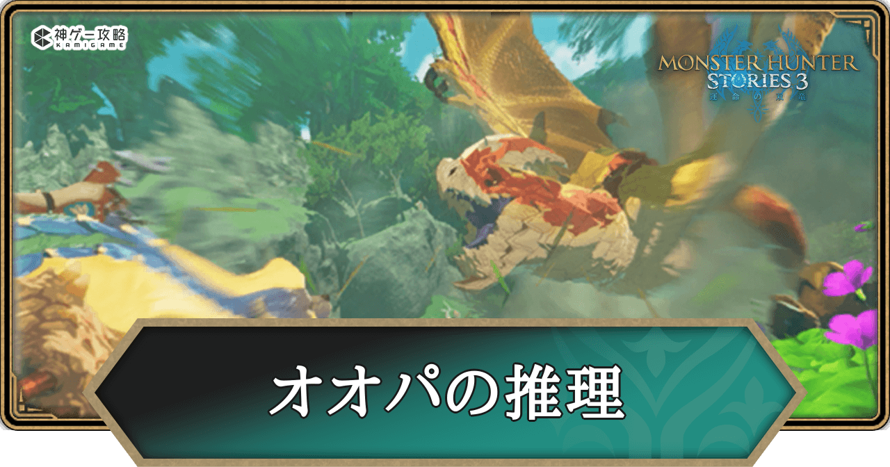 モンハンストーリーズ3のオオパのサイドストーリー第2章「オオパの推理」を解説。MHST3のオオパの推理の攻略チャートや報酬、発生時期やボスの攻撃傾向についても掲載しています。