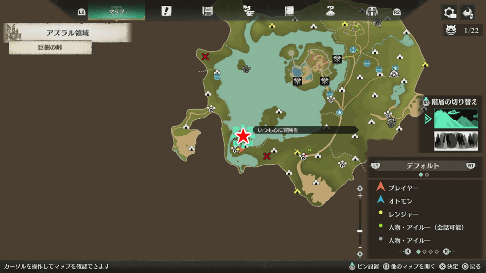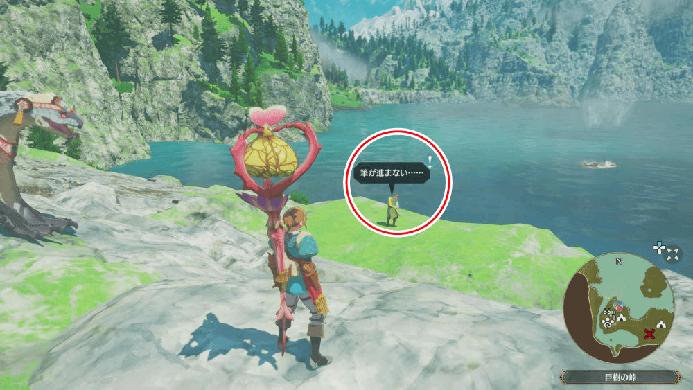 マップ 外観 「いつも心に冒険を」を受注するために、巨樹の峠にいる依頼人に話しかけよう。依頼人は、ネコタクスタンド「観測台:巨樹の峠」のすぐ近くにいるため、解放済みであればネコタクで移動するとすぐに到着できる。