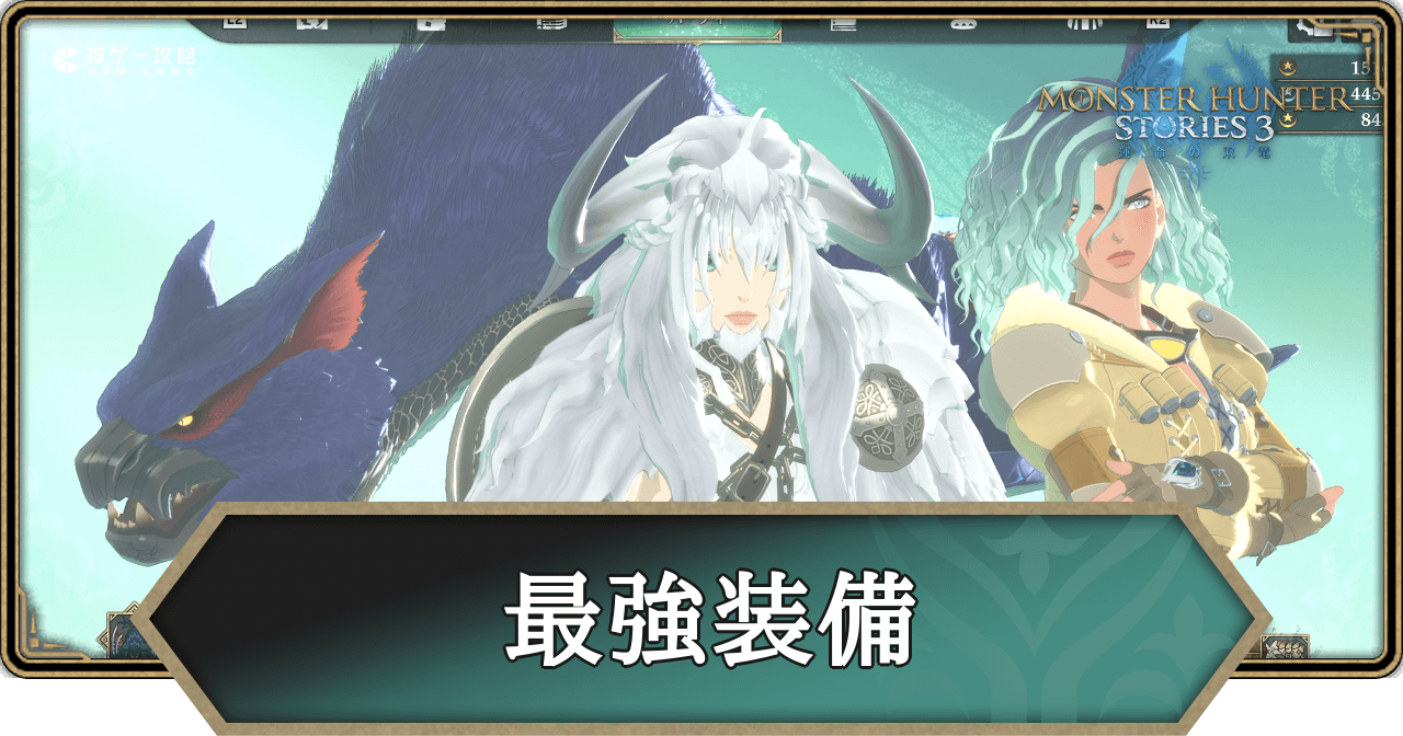モンハンストーリーズ3の「最強おすすめ装備」を解説。MHST3のおすすめ装備をストーリーの進行度に合わせ、武器と防具を掲載しています。