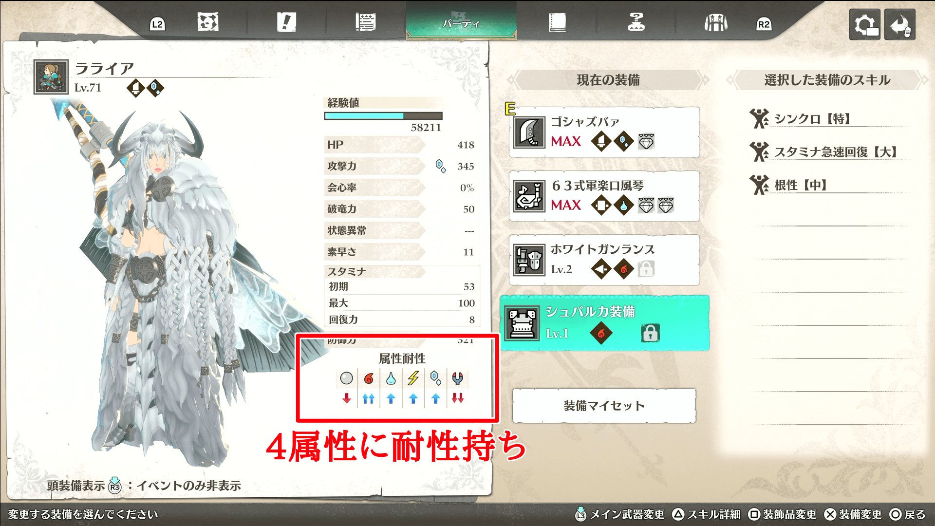 無耐性を持つガーディアン防具がおすすめ