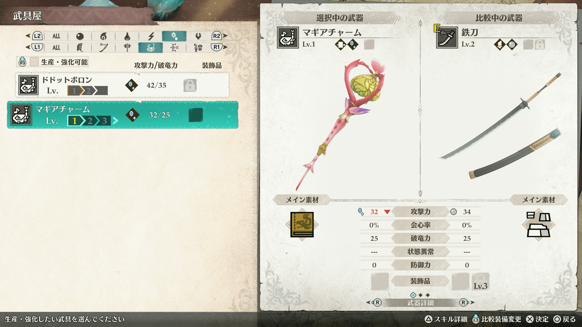 ガライャド編の強制戦闘は、凶異ヤツカダキ以外の全員が氷弱点のため、氷属性の武器を強化して使うのがおすすめだ。特に、旋律が高性能な「マギアチャーム」や、素材要求が軽い「アルクセロブラン」は作る価値が高い。残る1枠は龍属性武器を強化し、凶異ヤツカダキ対策にあてよう。