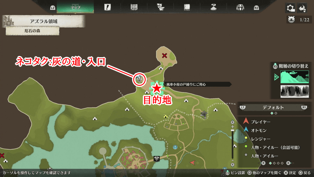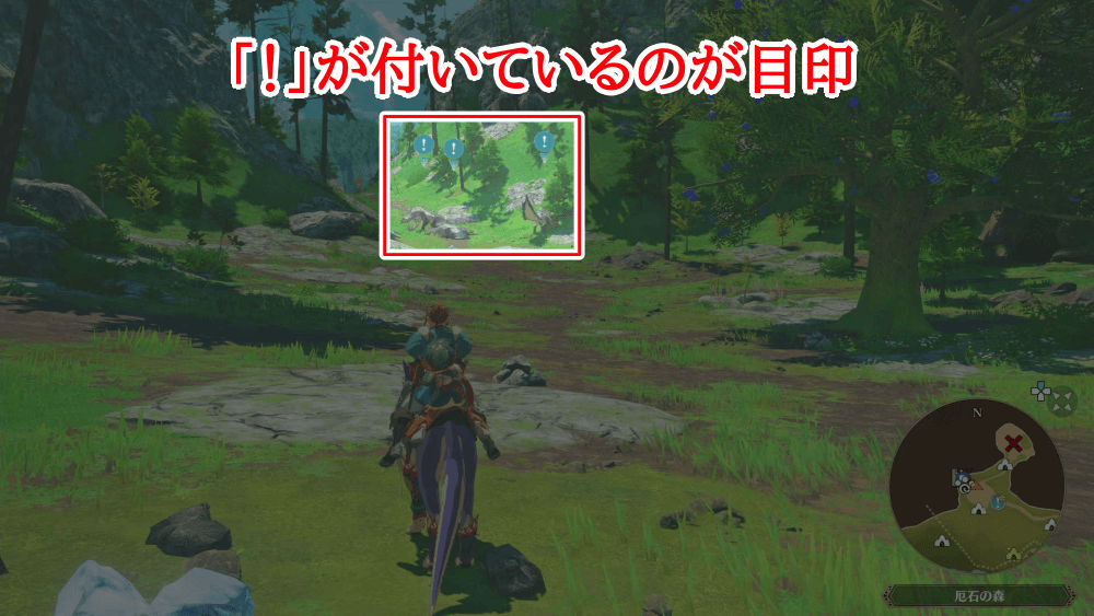 マップ 外観 依頼を受注したら、灰の道・入口付近にいるトビカガチを探しに行こう。灰の道・入口のネコタクにファストトラベルして東へ向かうと、「!」アイコンが付いた3体のトビカガチが集まっているため、すぐに見つけられる。