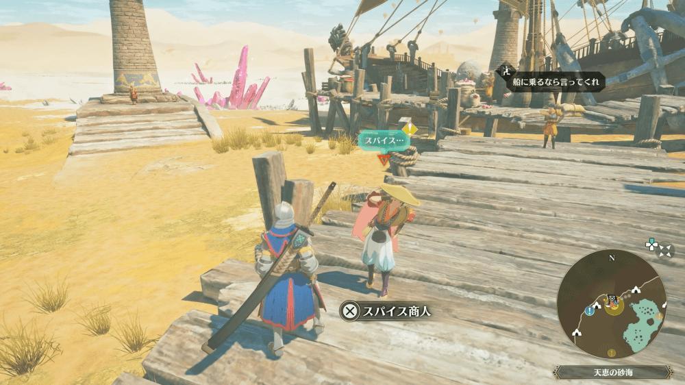 マップ 外観 観測台のイベントが終わったら、スパイス商人と話して激辛スパイスを入手しよう。スパイス商人は、タキルカン北西部のオアシスにいる。