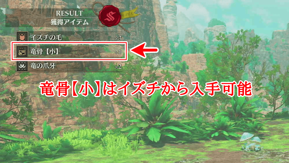 竜骨【小】は、イズチなどの小型モンスターからドロップする。オサイズチの素材を集めるついでに、周辺に出現するイズチを倒して集めるのがおすすめだ。