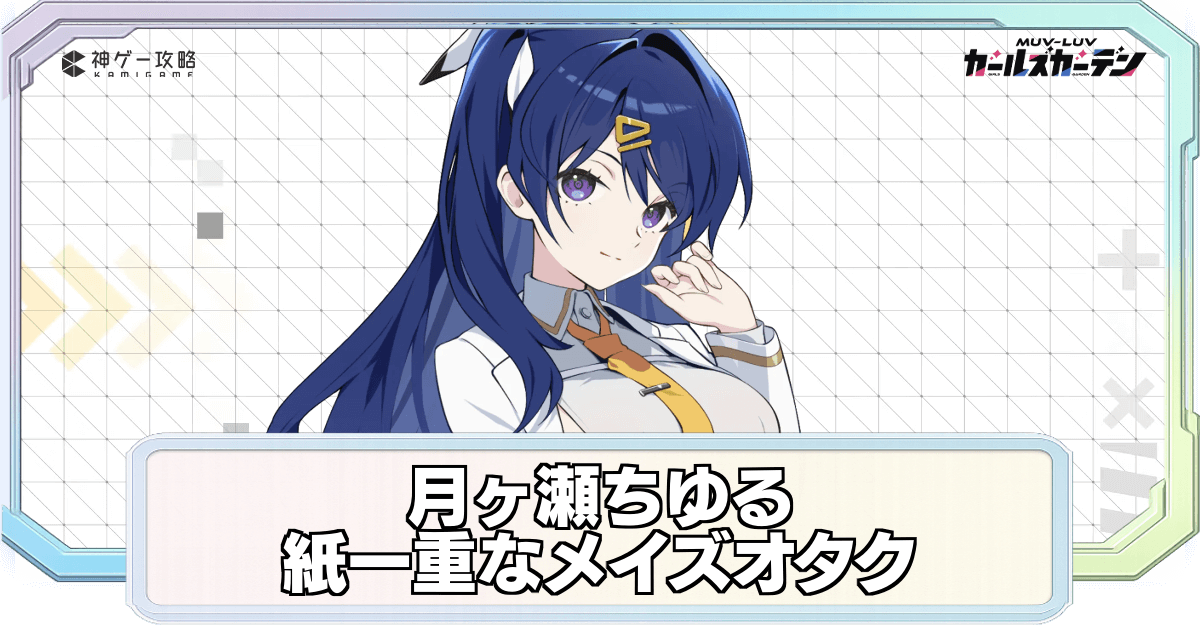 マブガル(マブラヴ ガールズガーデン)の【紙一重なメイズオタク】月ヶ瀬ちゆる(SR・シャイ)の性能評価やステータスなどを掲載。キャラの強さやステータス、スキル一覧も紹介しているため、ちゆるの強さの確認や参考する際にどうぞ。