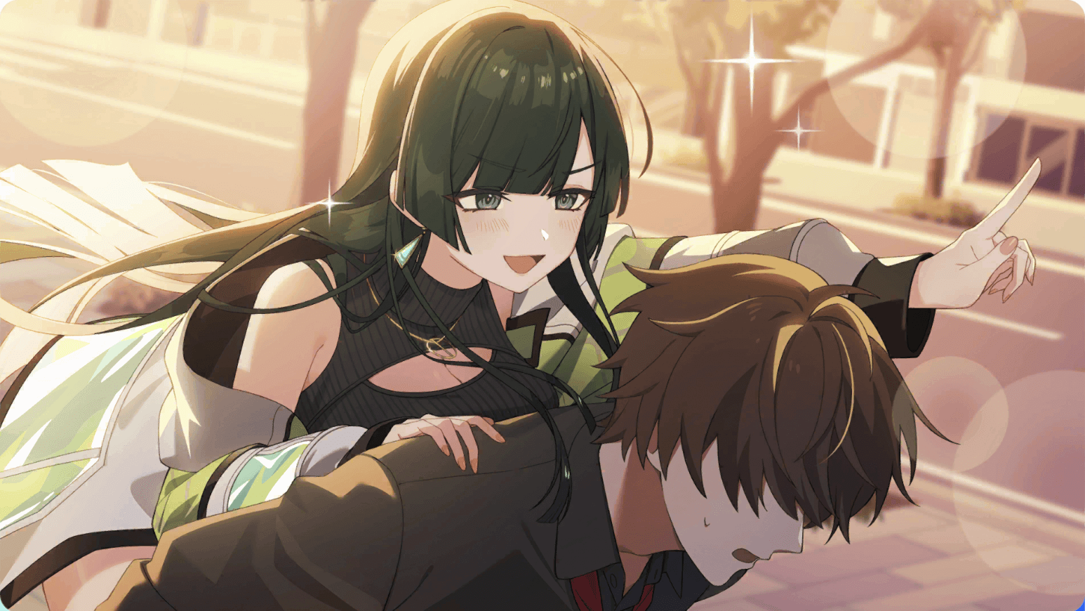 | テキスト | ほら、はーやーくー。いいからいいから、早く部屋に帰るわよ。ハイヨー!後輩クン! |