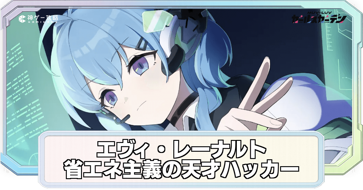 マブガル(マブラヴ ガールズガーデン)の【省エネ主義の天才ハッカー】エヴィ・レーナルト(SSR・アグレッシブ)の性能評価やステータスなどを掲載。キャラの強さやステータス、スキル一覧も紹介しているため、エヴィの強さの確認や参考する際にどうぞ。