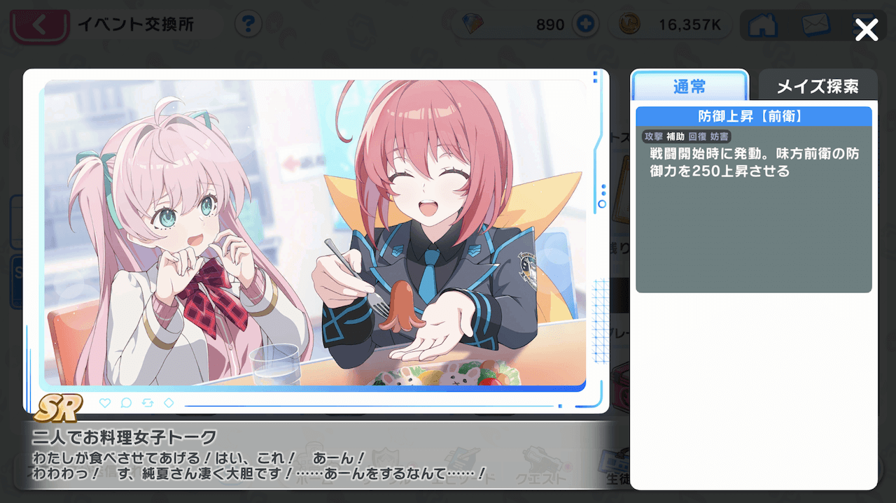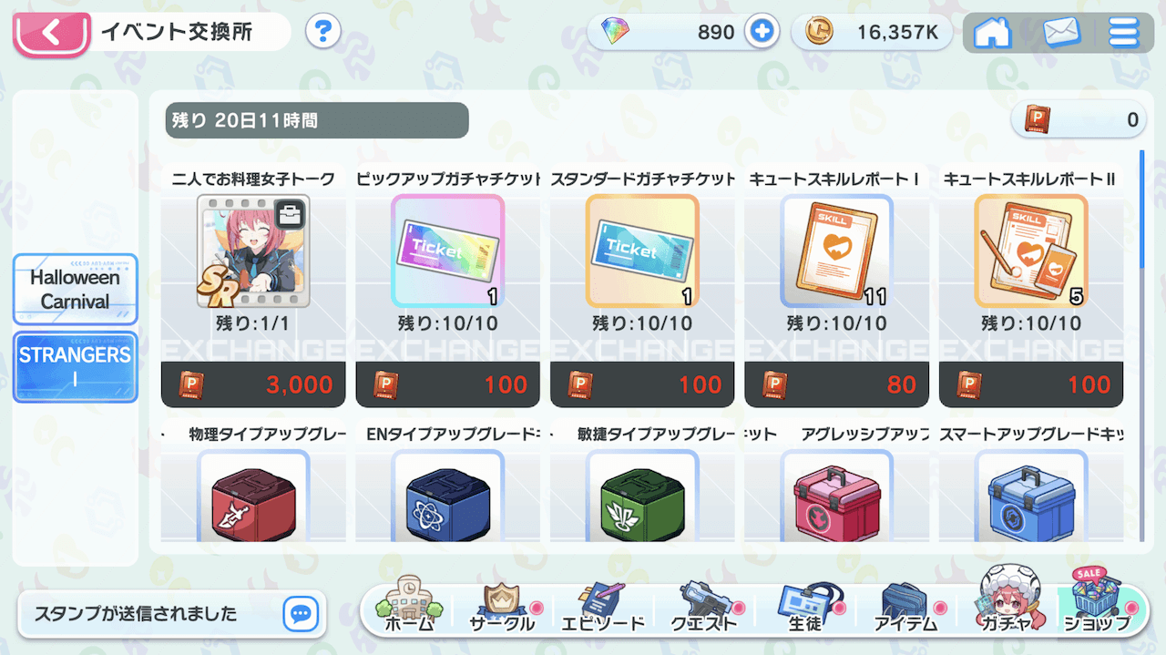 | 交換所で各種アイテムと交換するメモリーやガチャチケットも入手できる |