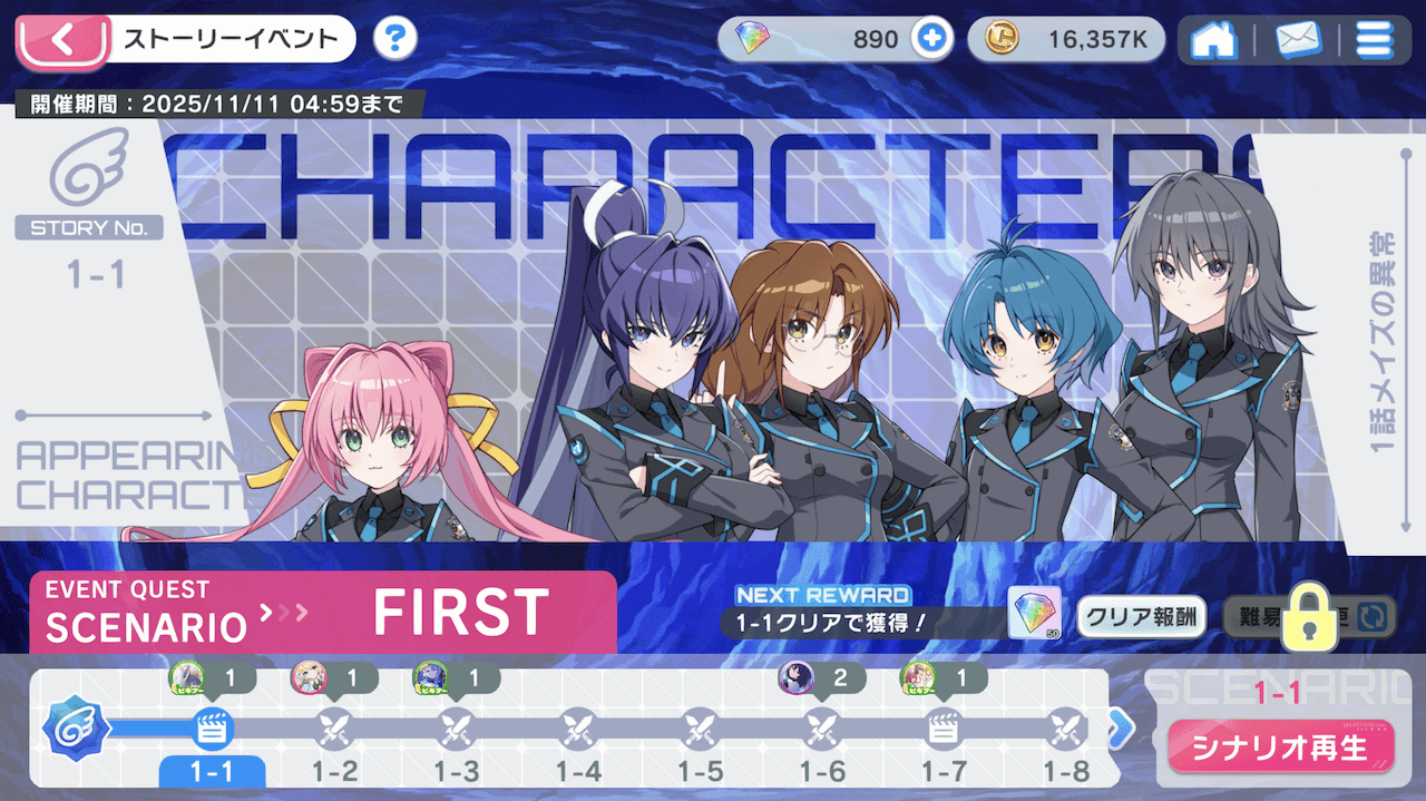 | イベントのノーマル1-1をクリア |