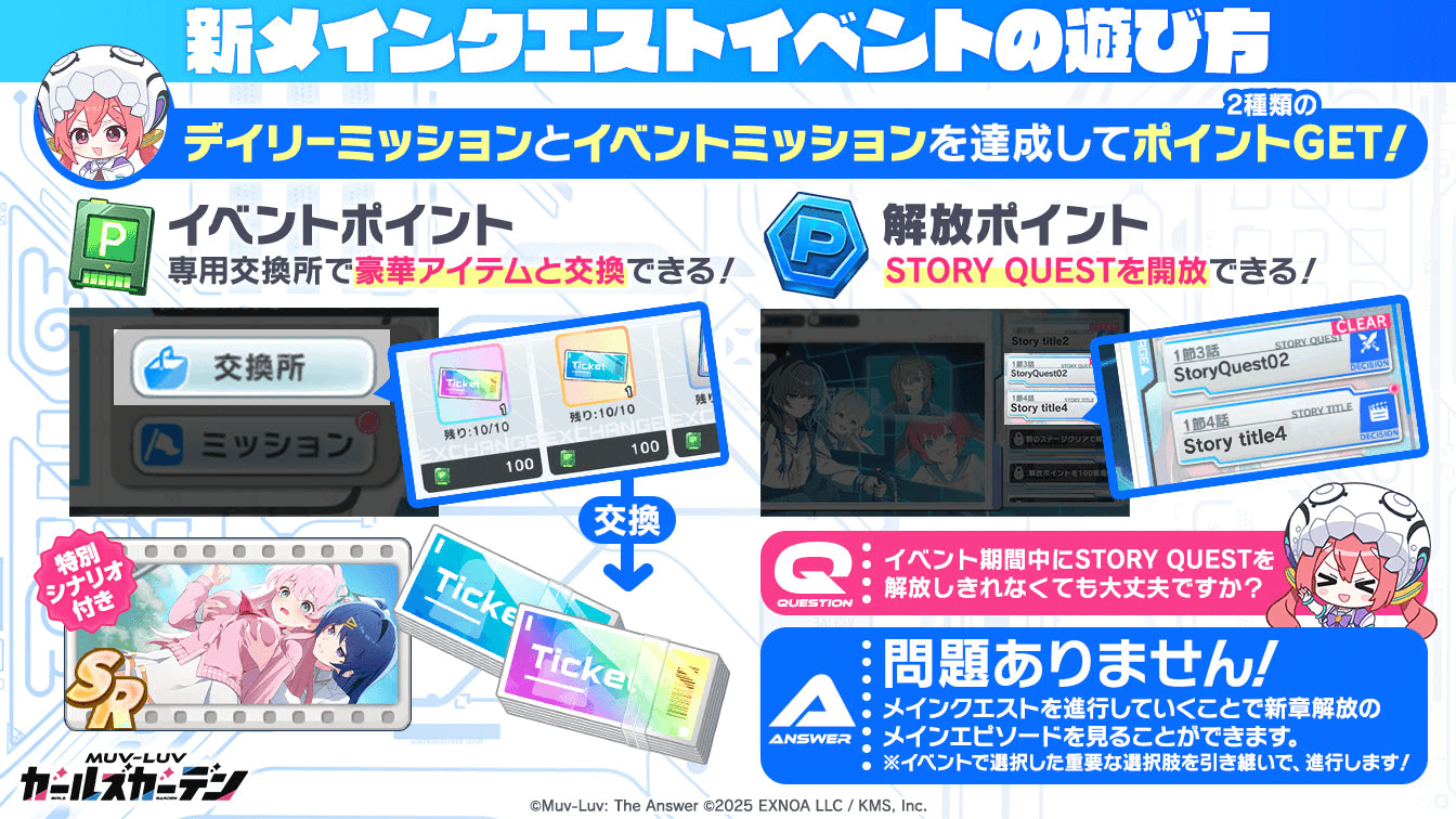 ミッションの達成で溜まったポイントを使い、交換所でアイテムと交換していこう。交換所を使えば、貴重なメモリーやガチャチケットなども入手できるため、イベント期間中に重要なアイテムの交換を優先的に終わらせておこう。