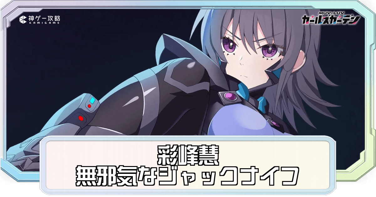 マブガル(マブラヴ ガールズガーデン)の【無邪気なジャックナイフ】彩峰慧(SSR・スマート)の性能評価やステータスなどを掲載。キャラの強さやステータス、スキル一覧も紹介しているため、彩峰の強さの確認や参考する際にどうぞ。