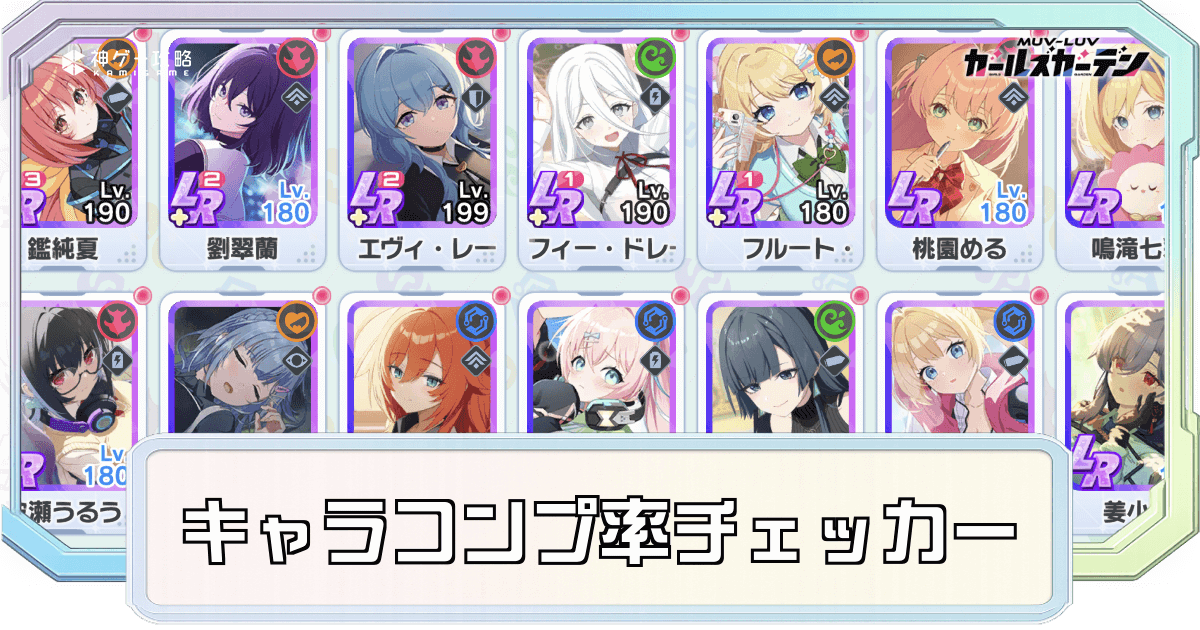 マブガル(マブラヴ ガールズガーデン)のキャラクターの所持率を調べられるコンプ率チェッカーツールを掲載。チームや属性などに分けて絞り込めるため、XやSNSに自分の持っているキャラ状況を広めたい時に使ってみよう。