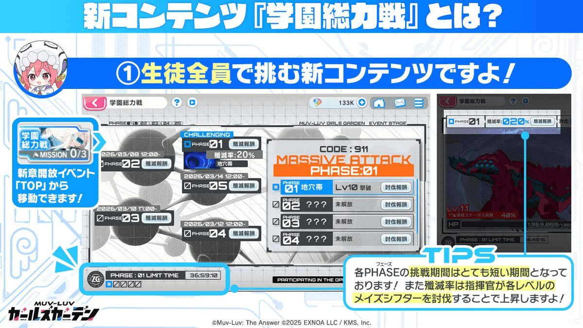 マブガル(マブラヴ ガールズガーデン)のイベント「学園総力戦」の攻略を掲載。やるべきことや報酬も掲載しているため、総力戦を攻略する際の参考にどうぞ。