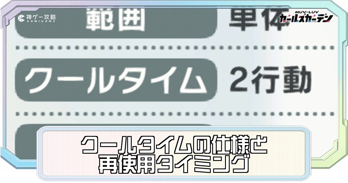 マブガル(マブラヴ ガールズガーデン)のクールタイム(CT)の仕様を解説。スキルに設定されているCTの「行動」や「ターン」を次に使用できるタイミングや、CTのカウントはどのように進むのか掲載しているため、戦闘の流れを組む際の参考にどうぞ。