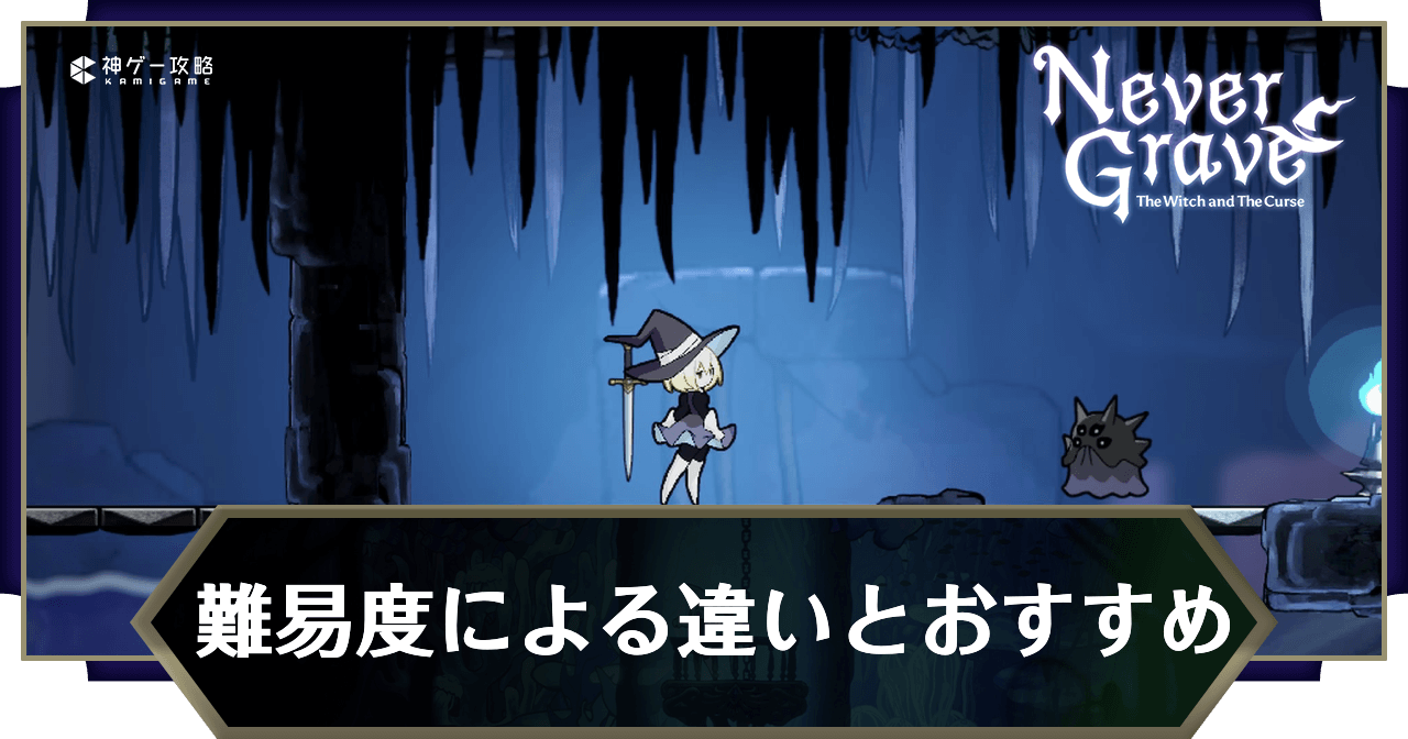 ネバーグレイブ(Never Grave)の難易度による違いやおすすめ難易度を解説。難易度の変更方法についても掲載しているため、難易度を設定する際の参考にどうぞ。