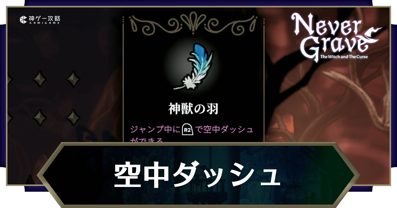 ネバーグレイブ(Never Grave)の「空中ダッシュ(神獣の羽)」を解説。空中ダッシュの解放条件や必要になるギミックについても掲載しています。