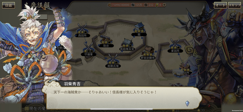 また、プレイヤーである織田軍の軍師は織田軍に属する戦国武将としか関わりがないため、織田軍以外の戦国武将との交流がない。正式版リリースには、ぜひ各キャラクターを掘り下げたクエストや織田軍以外の戦国武将との交流の実装を期待している。