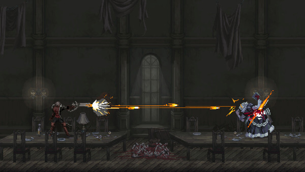 The Last Faithは2Dアクションとしてはオーソドックスな操作方法を採用しており、戦闘中の基本的な動作は「攻撃」「回避」「ジャンプ」の3種類です。敵の攻撃に対して、回避かジャンプを使って対応し、敵のスキを突いて攻撃を加えます。攻撃手段は右手武器によるものと、左手武器によるものがあり、装備した武器により大きく変わります。