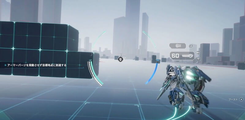 機体には流体アーマーと呼ばれる時間経過で回復する装甲と、HPが存在する。アーマーを削りきられたうえで、HPも失うと機体は撃墜される。なお、画面の右側に表示される青いバーはエネルギーであり、ブーストや近接攻撃などで消費される。