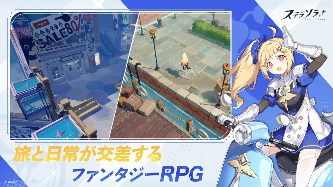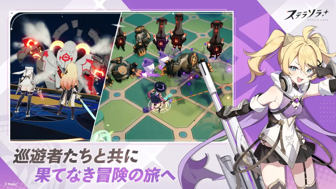 『ステラソラ』はファンタジー世界「ノヴァ」を舞台にしたアクションRPGだ。プレイヤーは記憶を失った「魔王」として、「巡遊者」と呼ばれる少女たちと「星ノ塔」を冒険したり、そこから入手できる不思議な道具「神器」に関わる騒動へ対応したりする。
