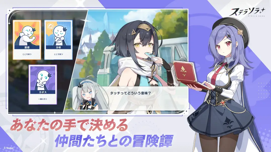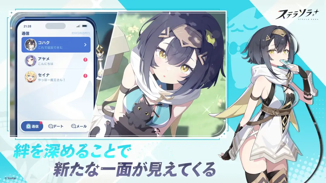 ステラソラのプレイアブルキャラクターをはじめとした主要キャラは、いわゆる美少女キャラクターたちであり、個性も強めだ。また、本作は冒険だけでなく日常も大事にしており、「巡礼者ストーリー(キャラスト)」や「デート」では女の子のいつもと違う側面が見えるようになっている。