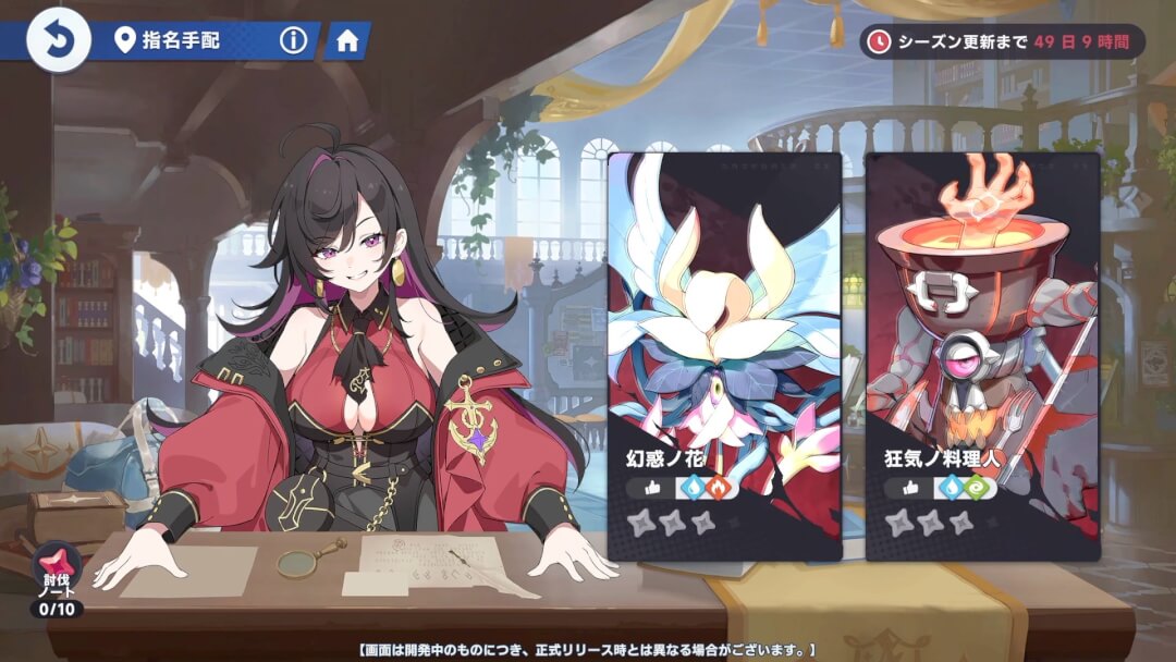 | 指名手配 | ・シーズンごとに超強力なボス2体が出現する ・時間内にボスに与えたダメージがスコアとして計上され、2体のボスそれぞれのスコアが合算された値が最終的なスコアになる ・スコアに応じてスター(ガチャに使える)を獲得 |