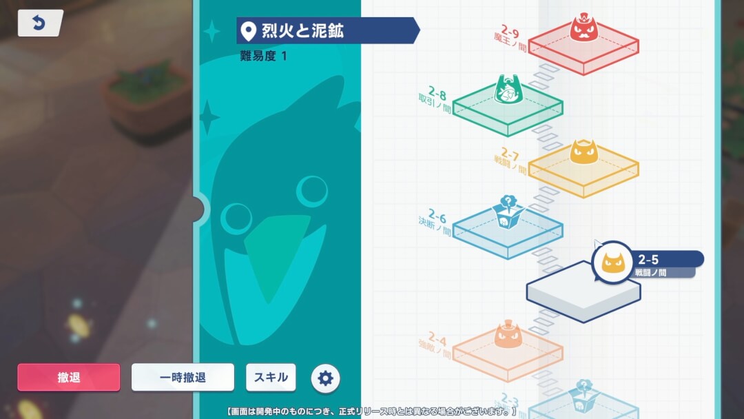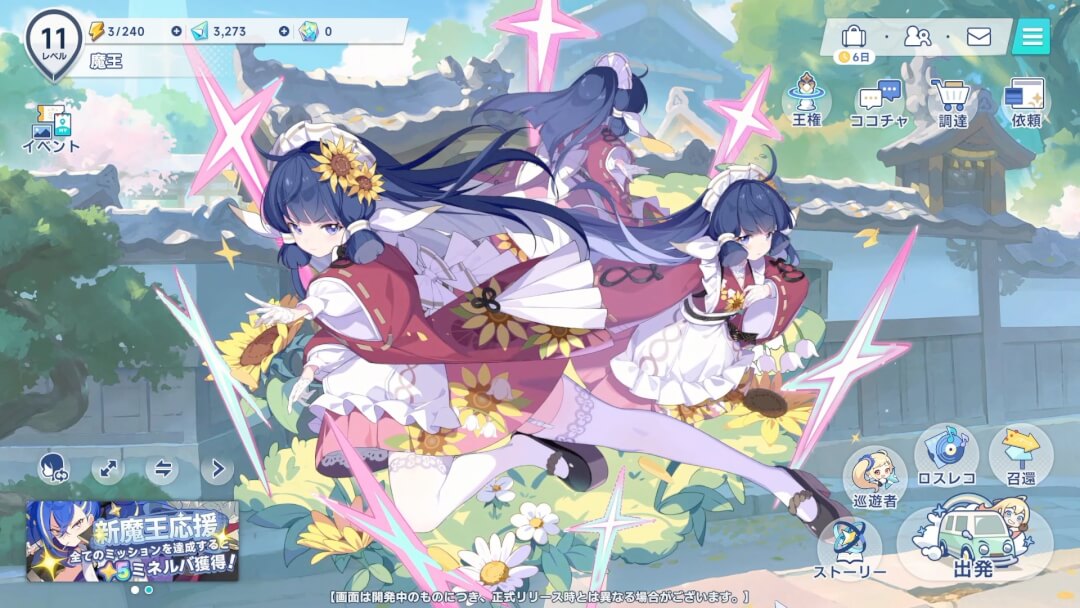| 素材調達 | ・やる気(スタミナ)を使用して素材を調達する ・素材ごとにステージが別れている ・ステージごとに複数の難易度が存在しており、高難易度ほどより良い素材が出やすい |