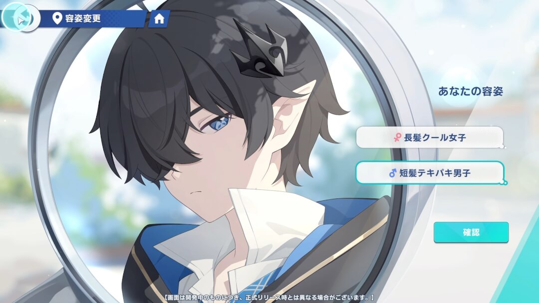 主人公の容姿は「長髪クール女子」と「短髪テキパキ男子」の2種類から選べる。セリフや展開は変わらないようなので、プレイヤーの好みで選んでよい。なお、どちらも容姿は仲間の女の子たちに負けないくらい整っている。