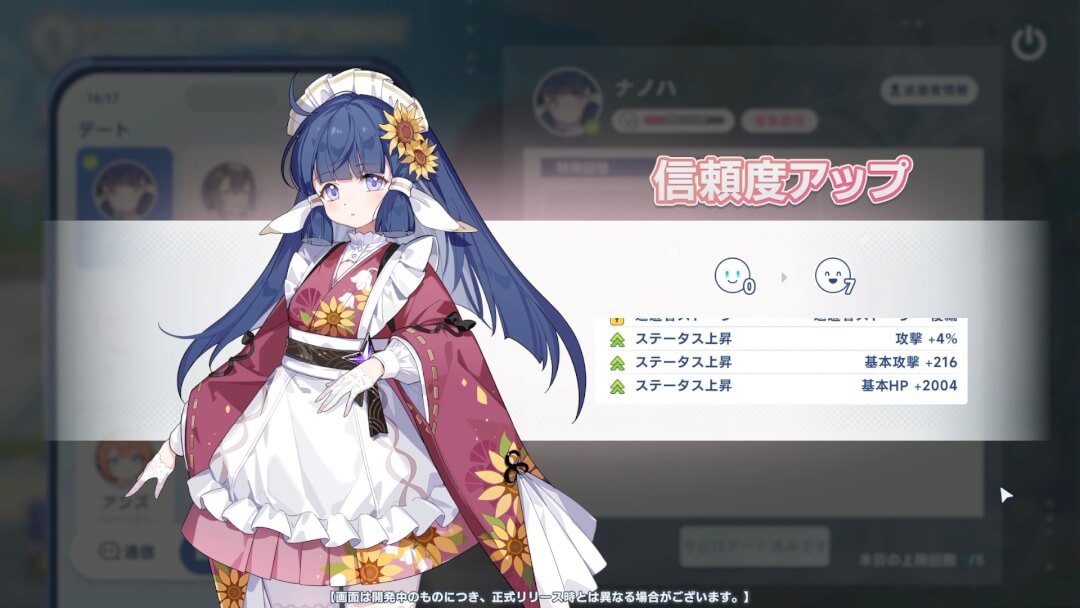 また、デートなどでキャラクターの信頼度を上げた場合、プロフィールの解放以外にも恒久的な強化が得られるなど、本作は全体的にプレイヤーの行動が育成面に反映されるようになっていた。キャラクターに対してシステム面からも愛着が湧きやすかったぞ。