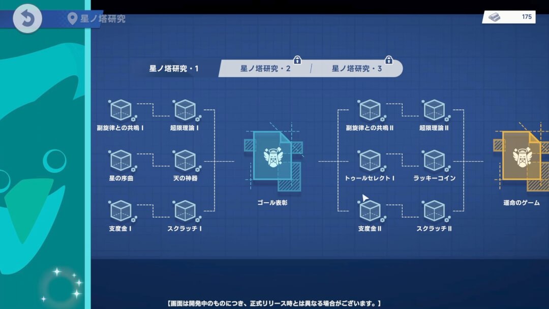 星ノ塔探索はランダム性のあるステージでより良い結果を得ようと何度も繰り返し挑戦するコンテンツだが、積立要素もある。たとえば、「星ノ塔研究」によって、探索時により多くの「素質」を獲得可能にしたりできるぞ。