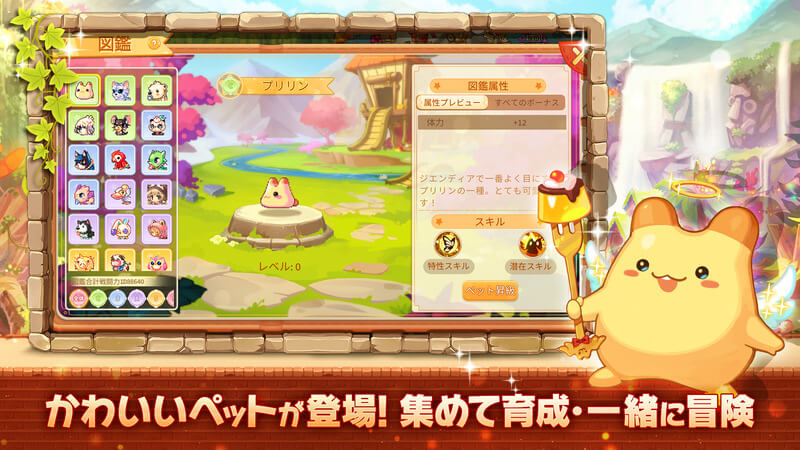 | ペット | ・ログインボーナスやガチャ、交換などで入手できる ・ペットはスキルでプレイヤーを強化する ・陣形で複数のペットをセットできる ・ペット自体も様々な形で強化できる |