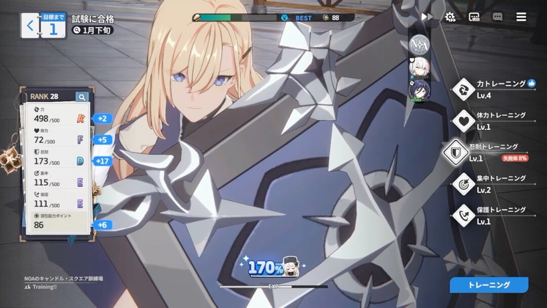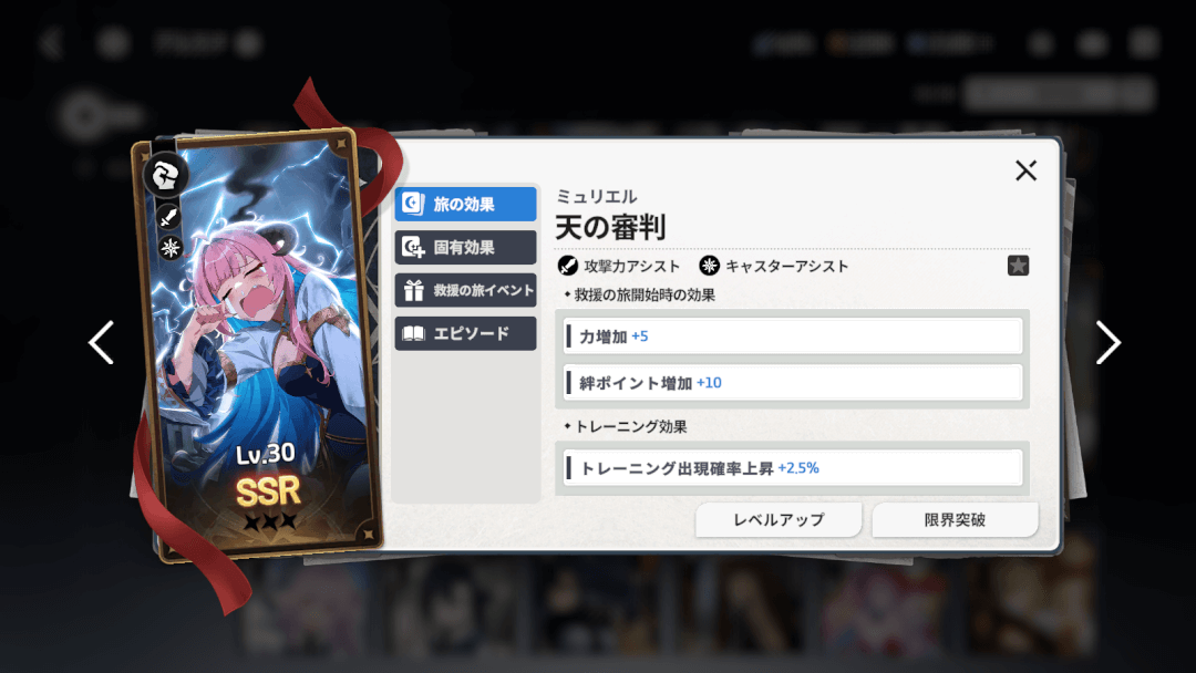 | アルカナ | ・「救援の旅」でトレーニング効果を高めたり、イベントを発生させたりしたりする ・アルカナ自体のレベルを上げれば、効果を高められる |