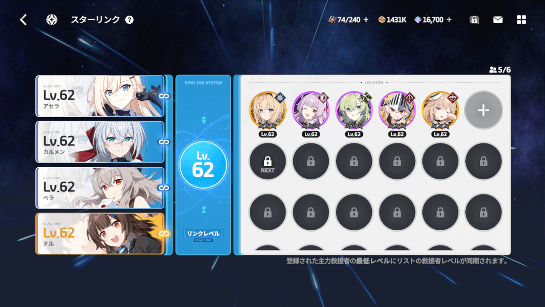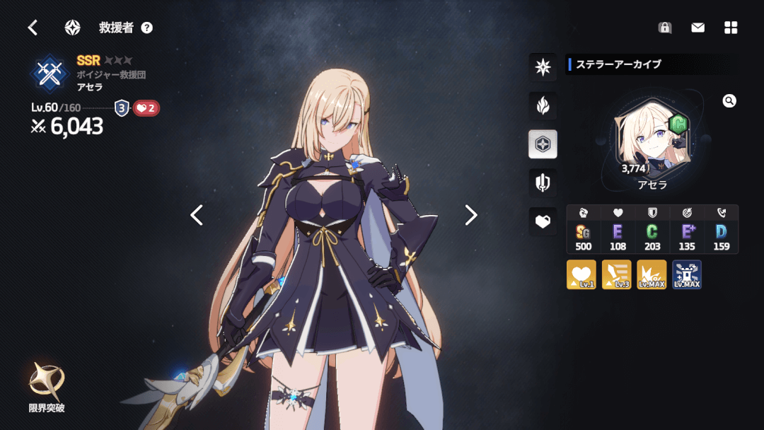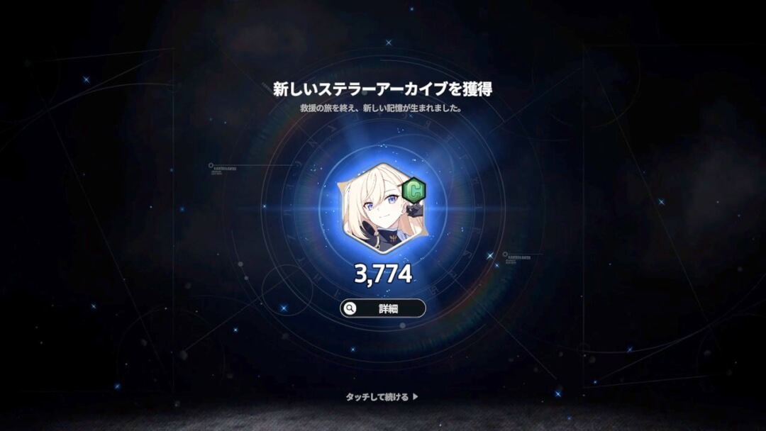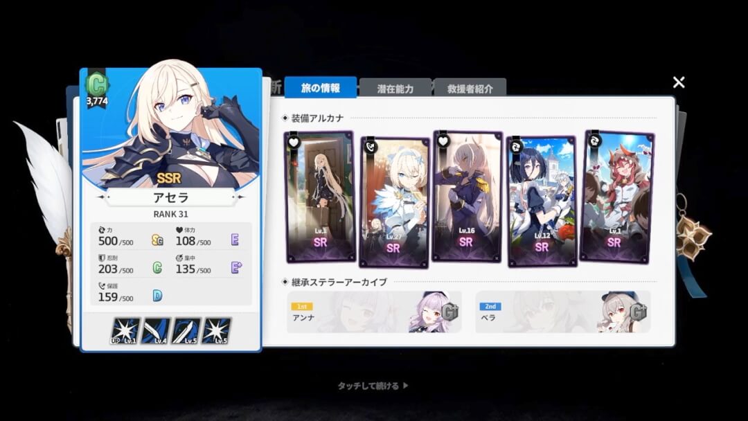 また、「救援の旅」を開始するとき、他キャラクターの「ステラーアーカイブ」を2つセットすれば、そのキャラクターの能力の一部を継承したり、「救援の旅」中にサポートを受けられる。様々なキャラの「救援の旅」を繰り返すことで、キャラクター全体の強さを上げていくことが可能だ。